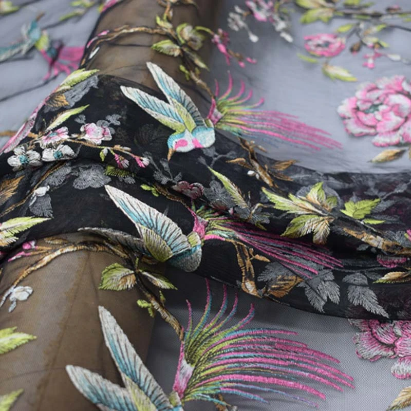 Black bottom birds mesh embroidery lace fabric for dress bazin riche getzner tissu telas por metro - Arts,Crafts